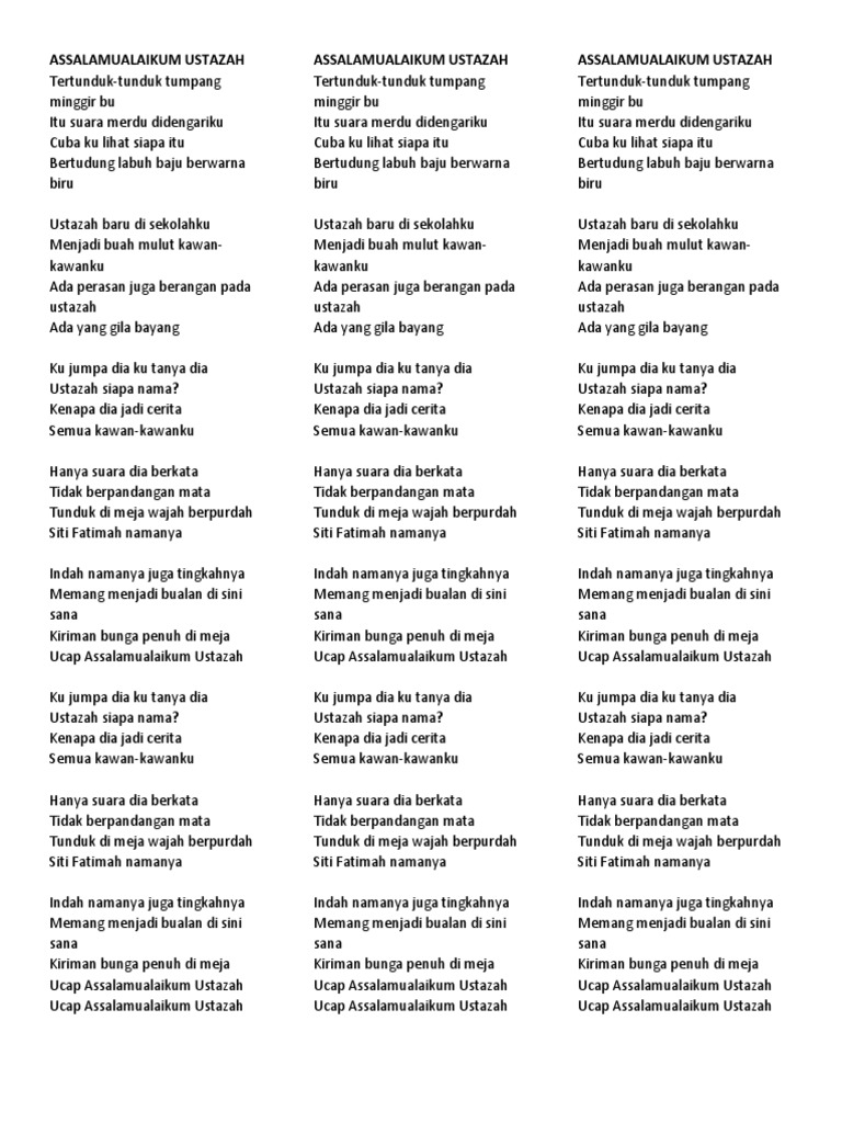 Lagu Assalamualaikum Ustazah Lirik By Da_Bridget365 19 Apr, 2022 Post a Comment Assalamualaikum Ustazah Pdf Khalifah Assalamualaikum Ustazah Lirik Youtube Lirik Lagu Assalamualaikum Ustazah Pdf Lirik Lagu Assalamualaikum Ustazah Pdf Share No comments for "Lagu Assalamualaikum Ustazah Lirik"